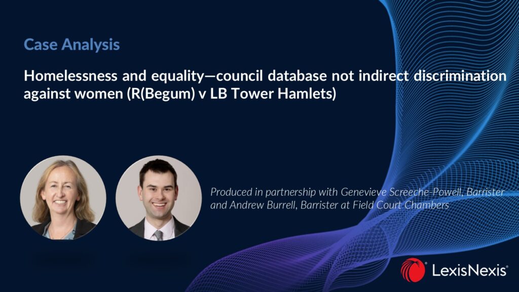 LexisNexis case analysis: Homelessness and equality—council database not indirect discrimination against women: R(Begum) v LB Tower Hamlets)